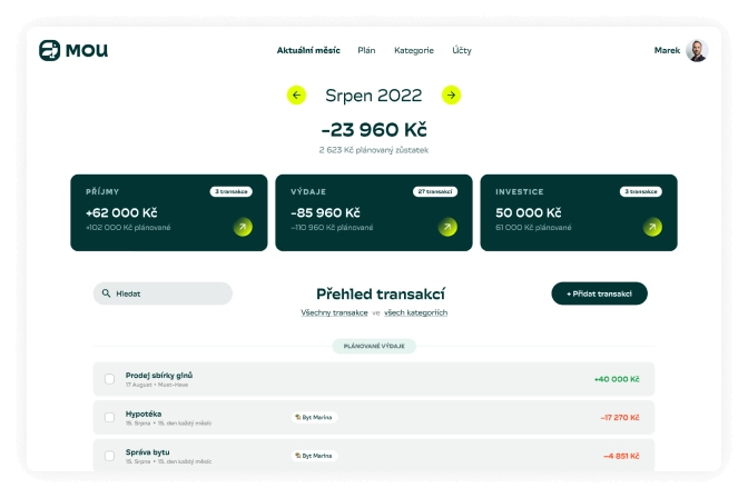 Zjistíš, odkud ti chodí peníze a kolik měsíčně utrácíš. MOU® s tebou bezpečně a rychle projde tvé bankovní výpisy a pomůže ti je přehledně rozřadit.